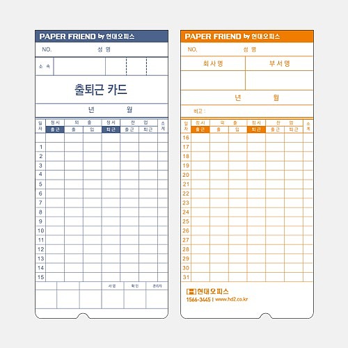 출퇴근 기록카드 (KT-1200용)