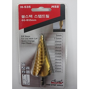 HSS TIN 코팅 스파이럴 스텝드릴(육각SHANK,Φ 6.35)
