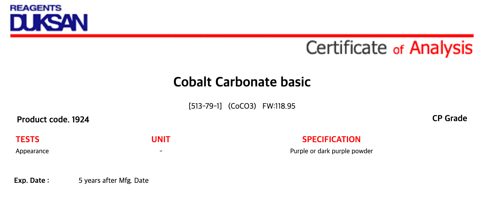 [1924] Cobalt Carbonate basic, CP, 500 g, CAS# 513-79-1 + 136,100원