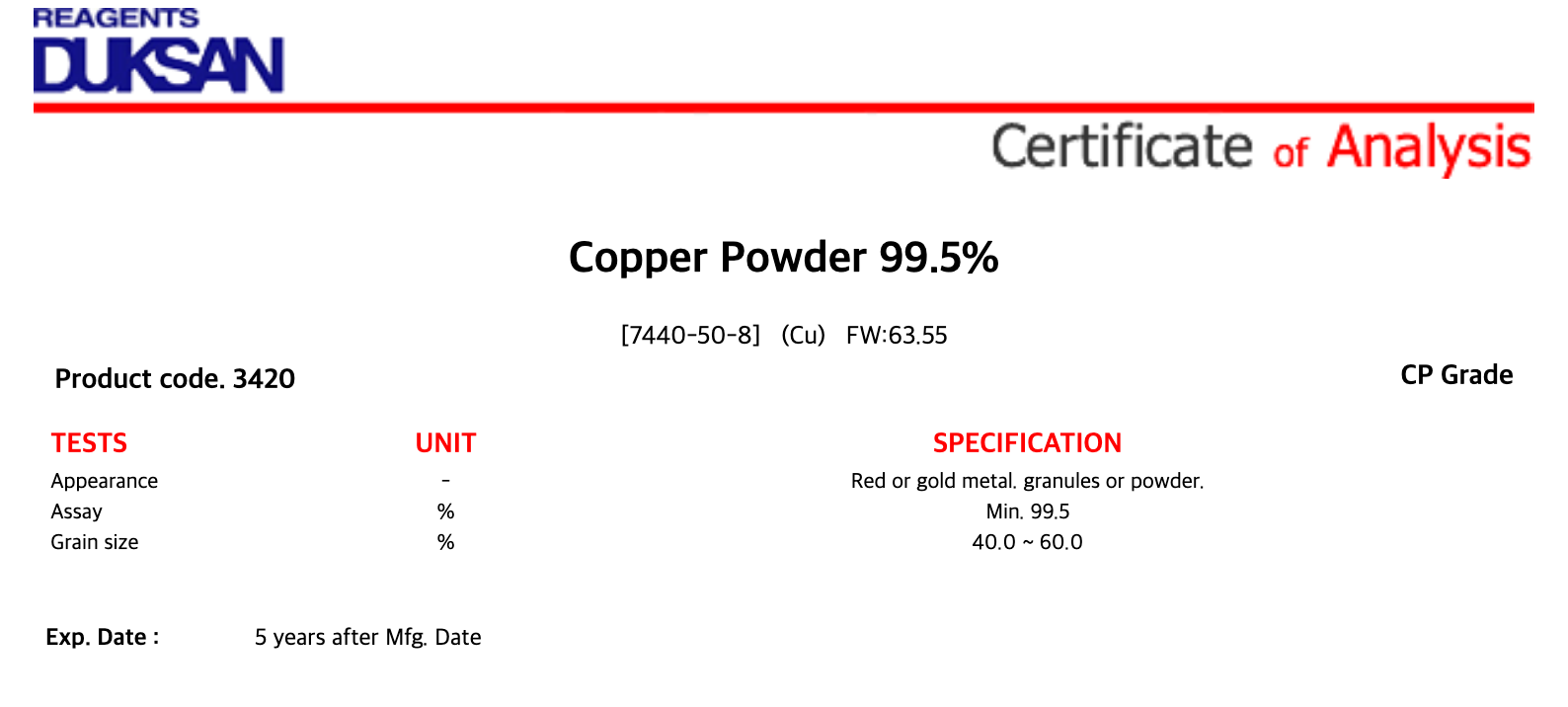 [3420] Copper Powder, CP, 25 kg, CAS# 7440-50-8 + 907,500원