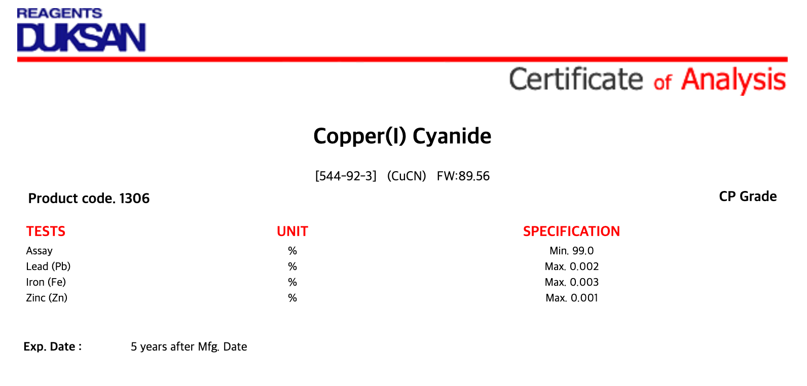 [1306] Copper(I) Cyanide, CP, 500 g, CAS# 544-92-3 + 21,200원