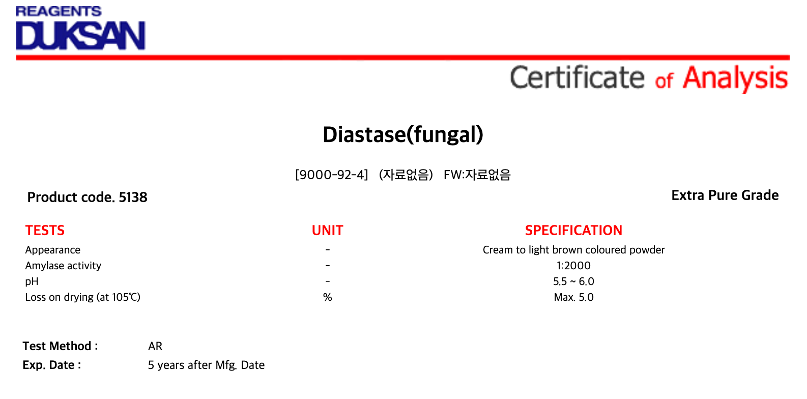 [5138] Diastase(fungal), Extra Pure, 500 g, CAS# 9000-92-4 + 34,500원