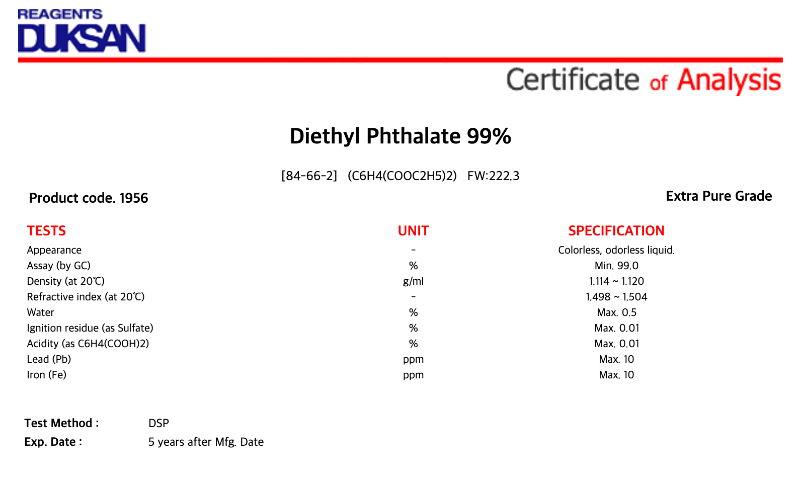 디에틸 1,2-벤젠디카르복실산(DIETHYL 1,2-BENZENEDICARBOXYLATE); 에틸 프탈산(ETHYL PHTHALATE); 네안틴(NEANTINE); 플라티놀 A(PALATINOL A); O-벤젠디카르복실 산 디에틸 에스테르(O-BENZENEDICARBOXYLIC ACID DIETHYL ESTHER); 플라시돌(PLACIDOL E); 1,2-벤젠디카르복실 산, 디에틸 에스테르(1,2-BENZENEDICARBOXYLIC ACID, DIETHYL ESTER); 프탈 산, 디에틸 에스테르(PHTHALIC ACID, DIETHYL ESTER); 프탈올(PHTHALOL); 데P(DEP); "코다플렉스" DEF 가소제("KODAFLEX" DEP PLASTICIZER)