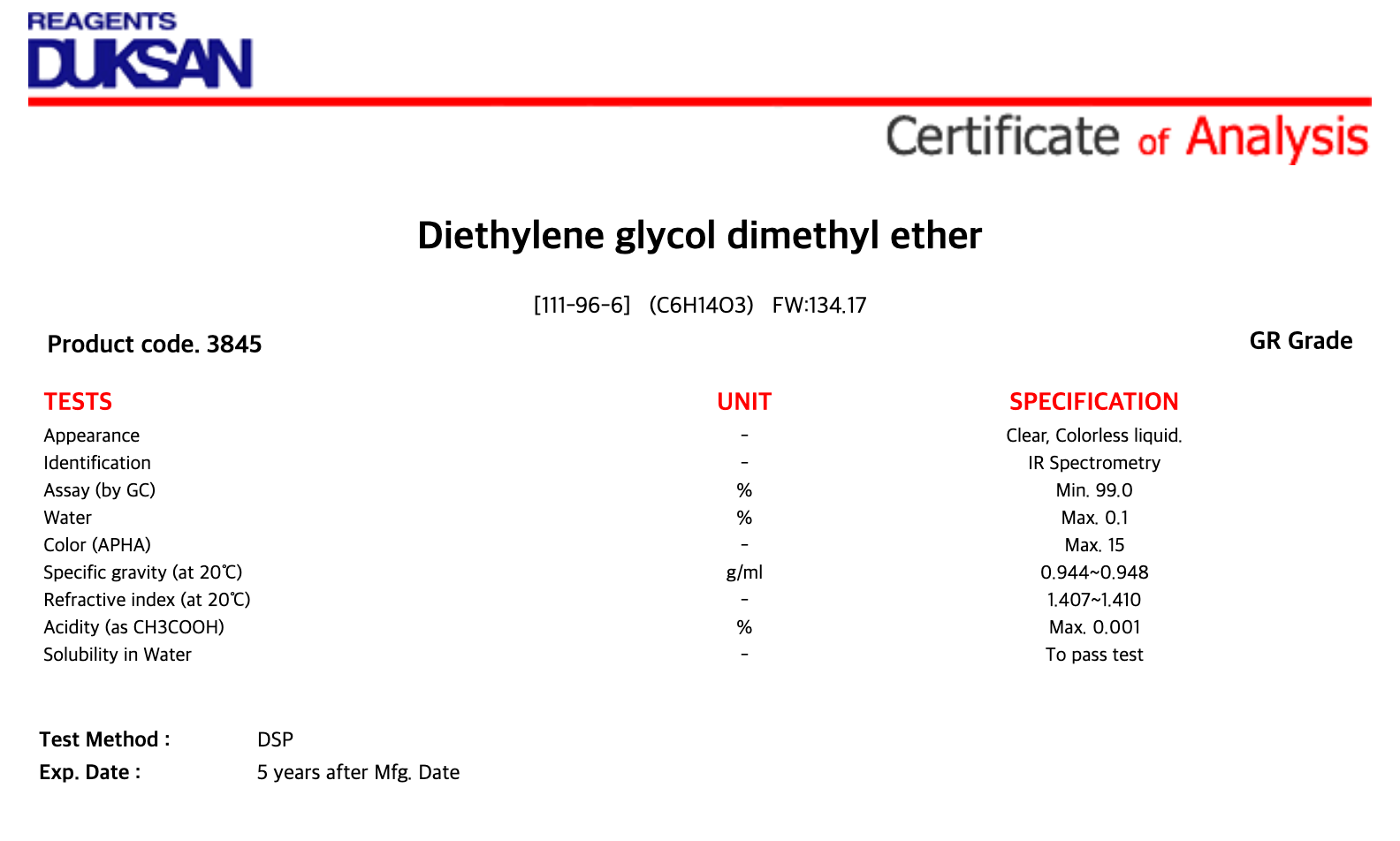 1,1'-Oxybis(2-methoxyethane), Diglyme, Dimethyl diglycol, 2-Methoxyethyl ether, Di(2-methoxyethyl) ether, DMDG