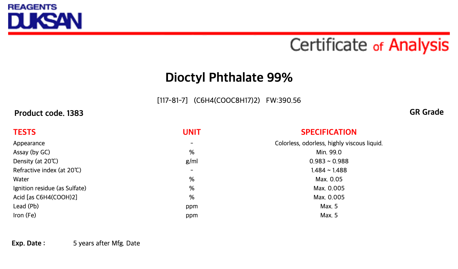 비스(2-에틸헥실) 프탈레이트 : 비스(2-에틸헥실)프탈레이트Bis(2-ethylhexyl) phthalate: 1,2-Benzenedicarboxylic acid bis(2-ethylhexyl) ester; Dioctyl phthalate