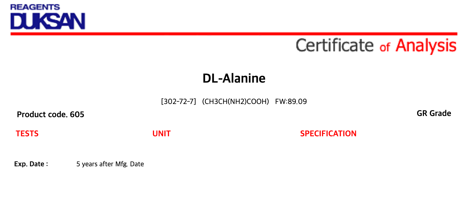 알라닌(ALANINE); DL-2-아미노프로판오익 산(DL-2-AMINOPROPANOIC ACID); DL-알파-아미노프로피오닉 산(DL-ALPHA-AMINOPROPIONIC ACID); 알파 알라닌(ALPHA ALANINE); 알파-아미노프로피오닉 산(ALPHA-AMINOPROPIONIC ACID)