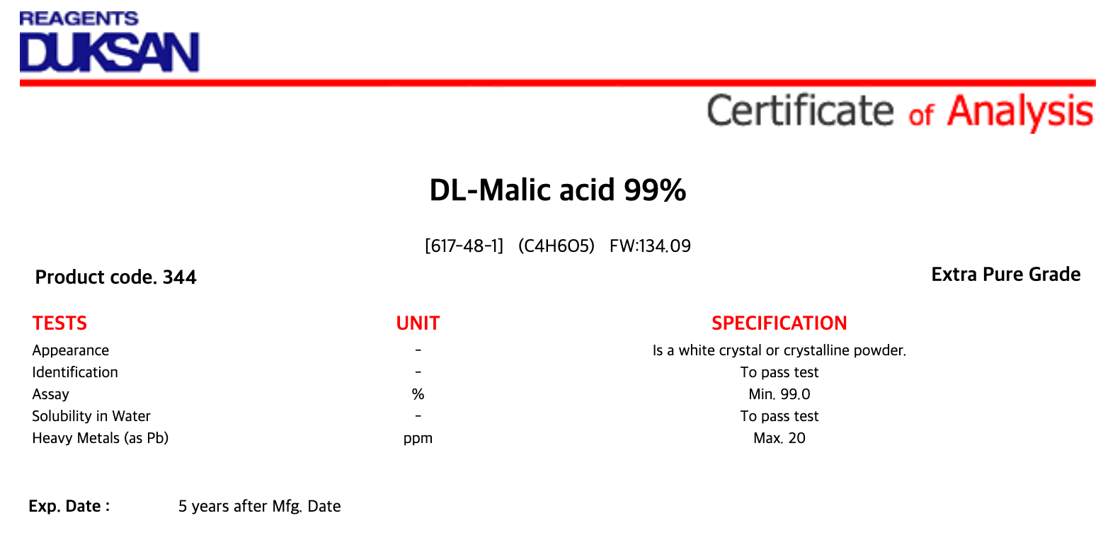말산, DL-; 뷰테인이산, 하이드록시-; 뷰테인이산, 하이드록시-, (±)-; 포말러스산; DL-하이드록시석신산; R,S(±)-말산