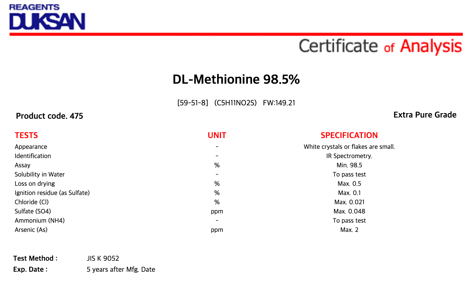 아세메티온(ACEMETION); 반티오닌(BANTHIONINE); 시나론(CYNARON); 디프린(DYPRIN); 로바민(LOBAMINE); 메오닌(MEONINE); 메틸라닌(METHILANIN); (+,-)-메티오닌((+/-)-METHIONINE); 메티온(METIONE); 메르티오닌(MERTIONIN); 네스톤(NESTON); 페다메트(PEDAMETH); DL-메티오닌(DL-METHIONINE); 라세메티오닌(RACEMETHIONINE); 아무렉스(AMUREX); 우리메트(URIMETH)