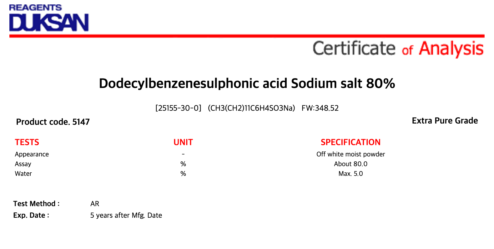 선형 알킬벤젠 설포네이트; 나트륨-n-알킬(C10-13) 벤젠 설포네이트; 말론 ALinear alkylbenzene sulfonates; LAS; Sodium-n-alkyl (C10-13) Benzene Sulfonate;Numerous trade names, e.g. Marlon A
