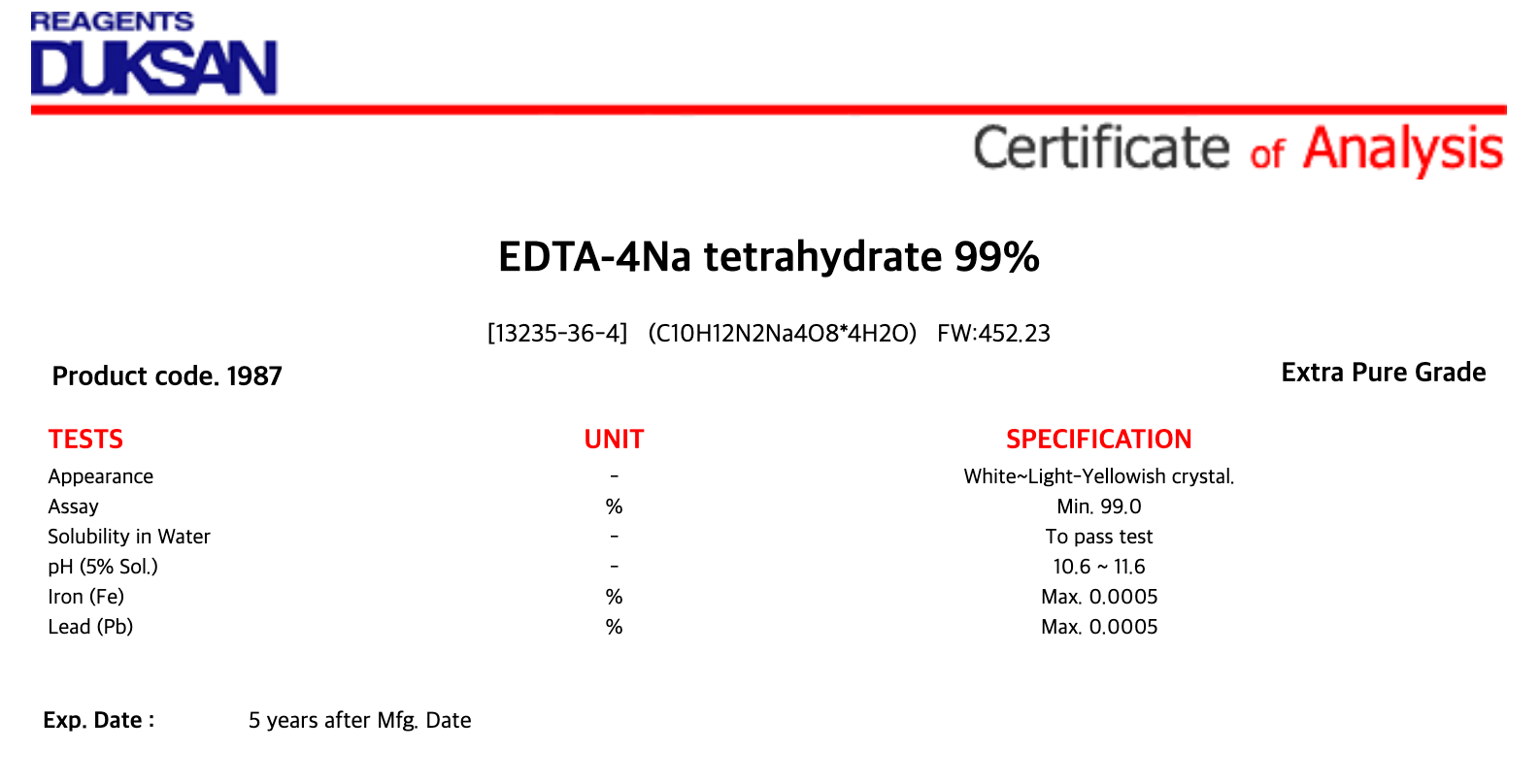 | 품명 : | EDTA-4Na tetrahydrate 99% |