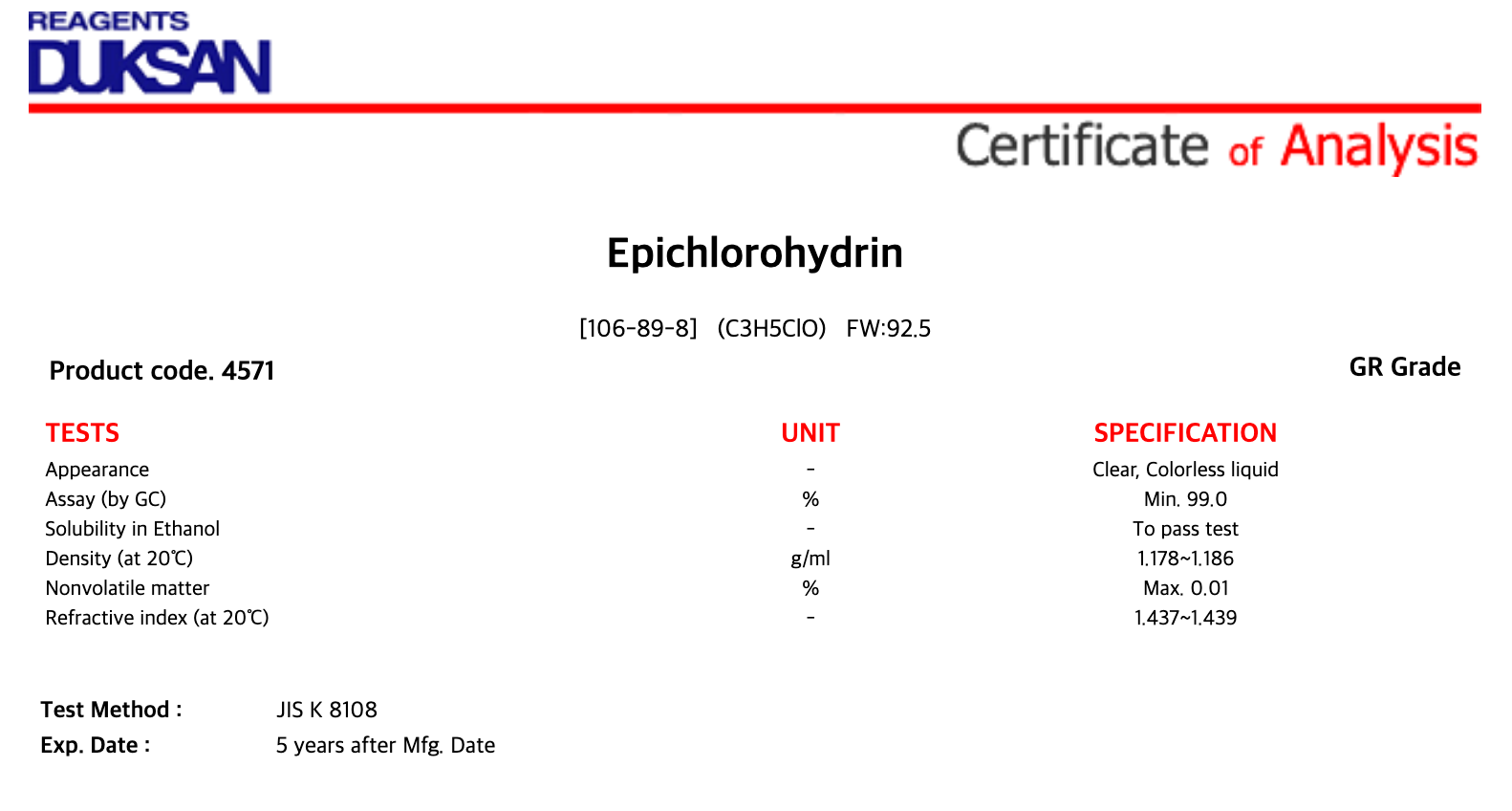 [4571] Epichlorohydrin, GR, 1 kg, CAS# 106-89-8 + 19,200원