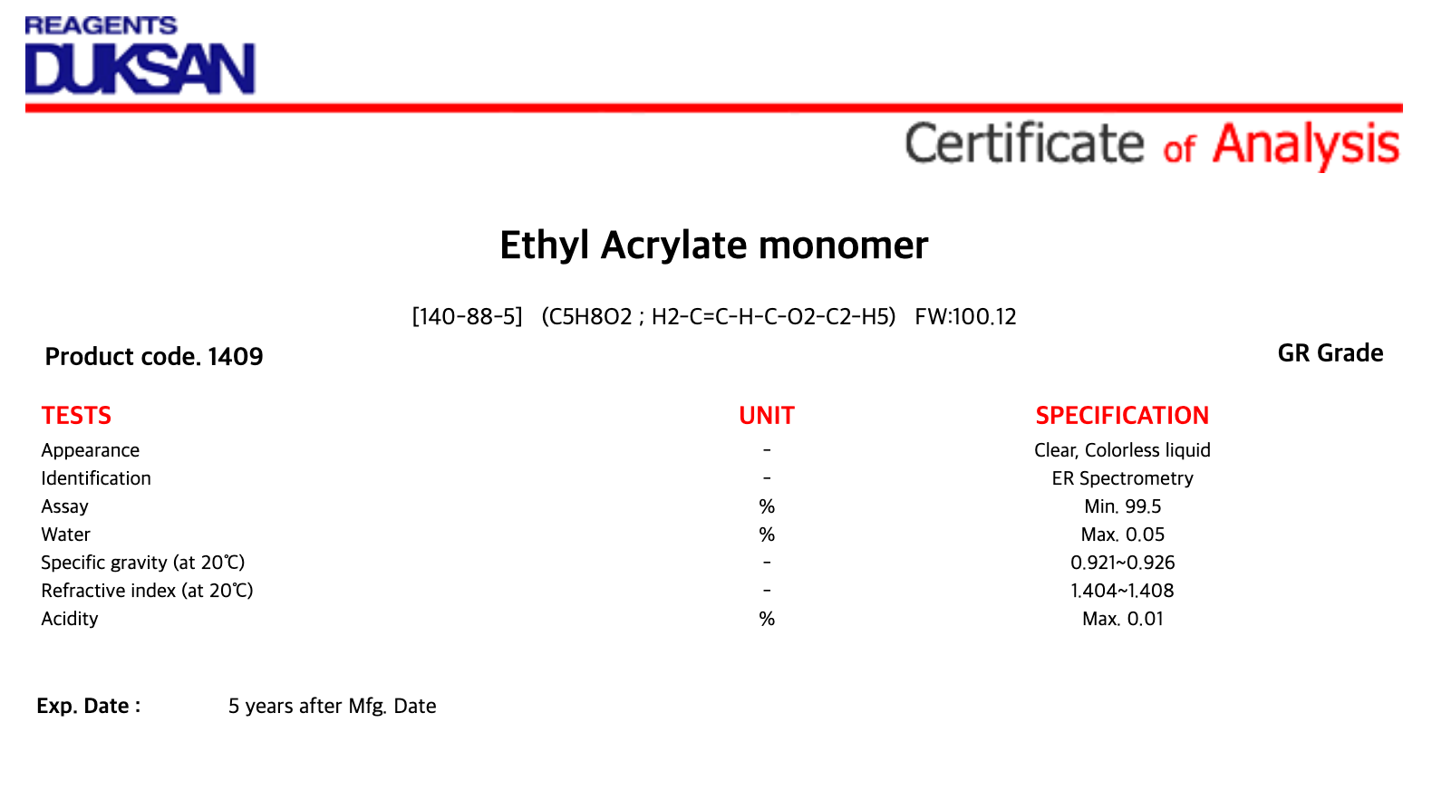 2-Propenoic acid, ethyl ester; Acrylic acid ethyl ester; Ethyl propenoate; Ethyl prop-2-enoate