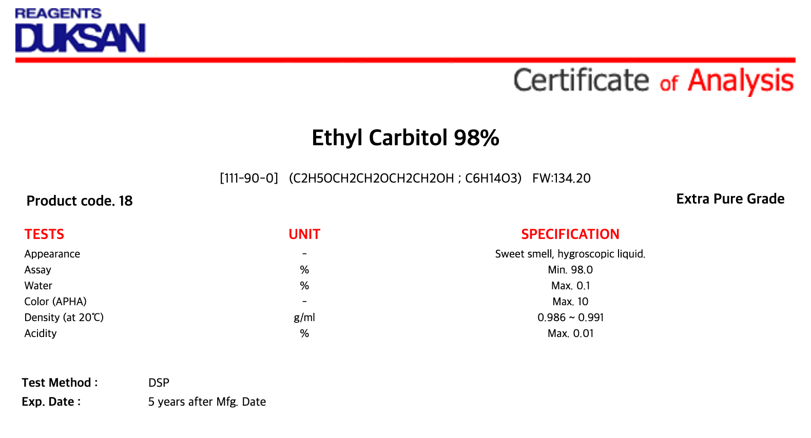 18 1. Ethyl Carbitol, Extra Pure, 18 ℓ, CAS# 111-90-0 1/EA 소비자가 : 142,300원