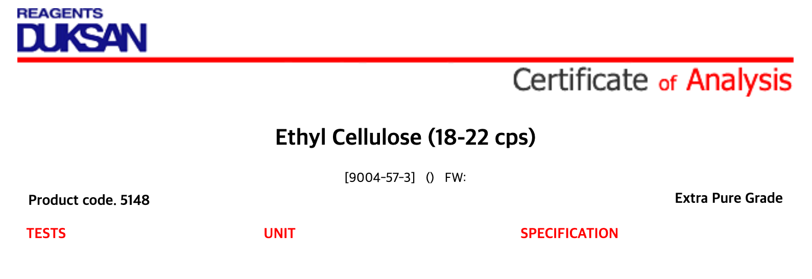 [5148] Ethyl Cellulose (18-22 cps), Extra Pure, 500 g, CAS# 9004-57-3 + 154,300원
