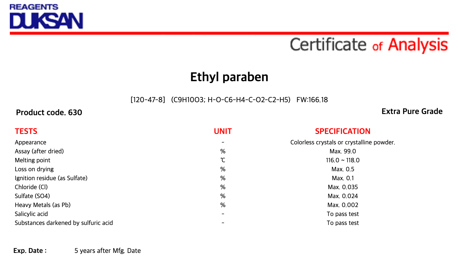 [630] Ethyl paraben, Extra Pure, 500 g, CAS# 120-47-8 + 24,200원