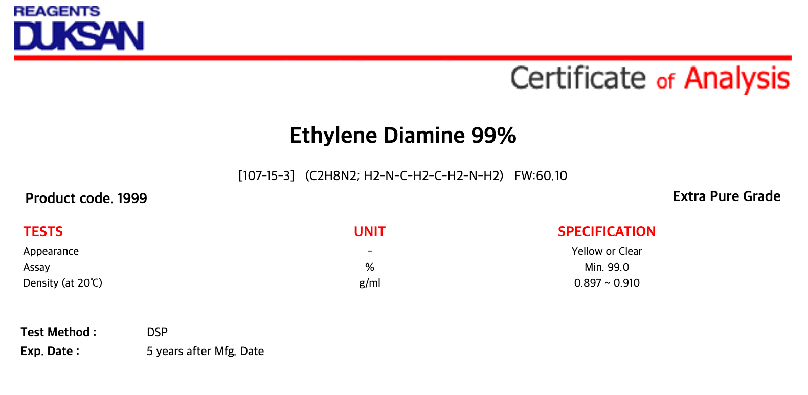 [1999] Ethylene Diamine, Extra Pure, 1 ℓ, CAS# 107-15-3 + 21,700원