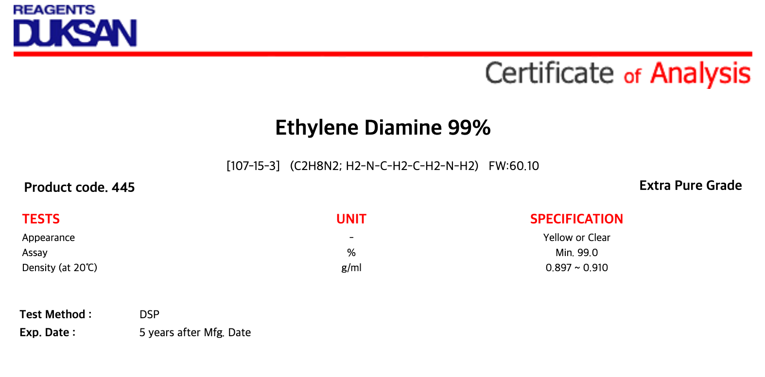 [445] Ethylene Diamine, Extra Pure, 18 ℓ, CAS# 107-15-3 + 352,000원