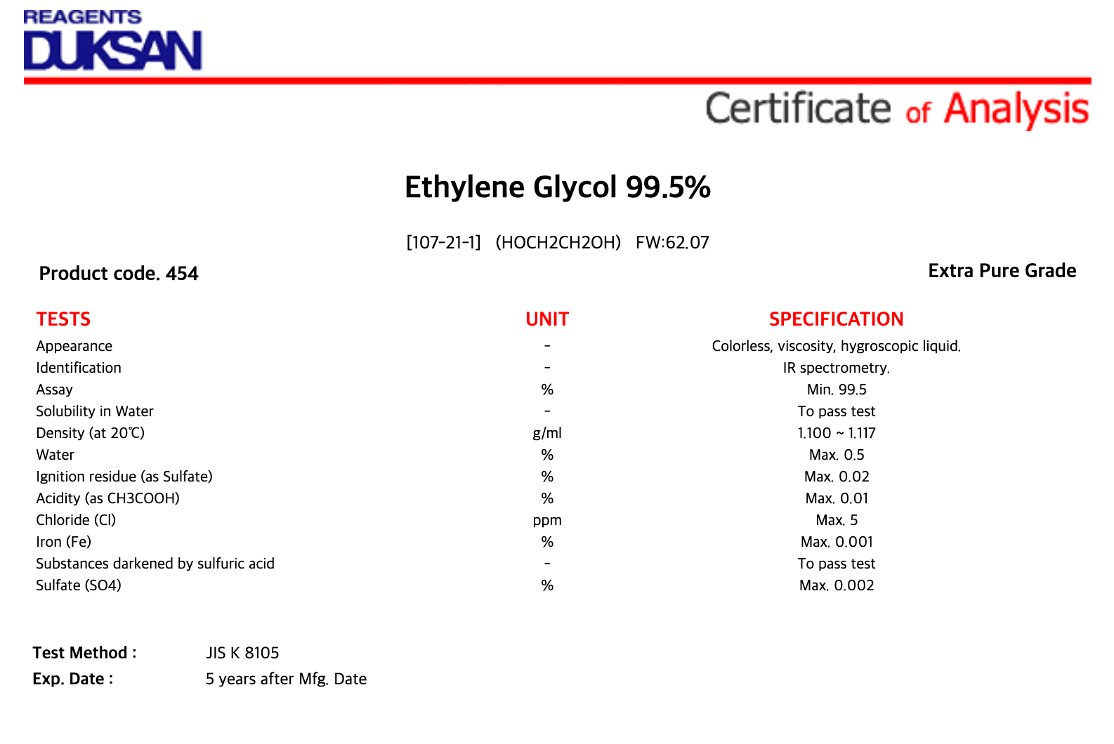 [454] Ethylene Glycol, Extra Pure, 1 kg, CAS# 107-21-1 + 10,700원
