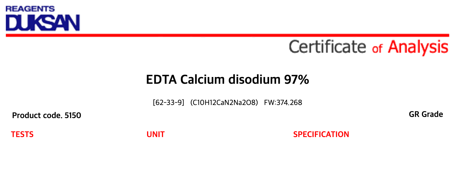 Ethylenediaminetetraacetic acid calcium disodium salt ; sodium calcium edetate