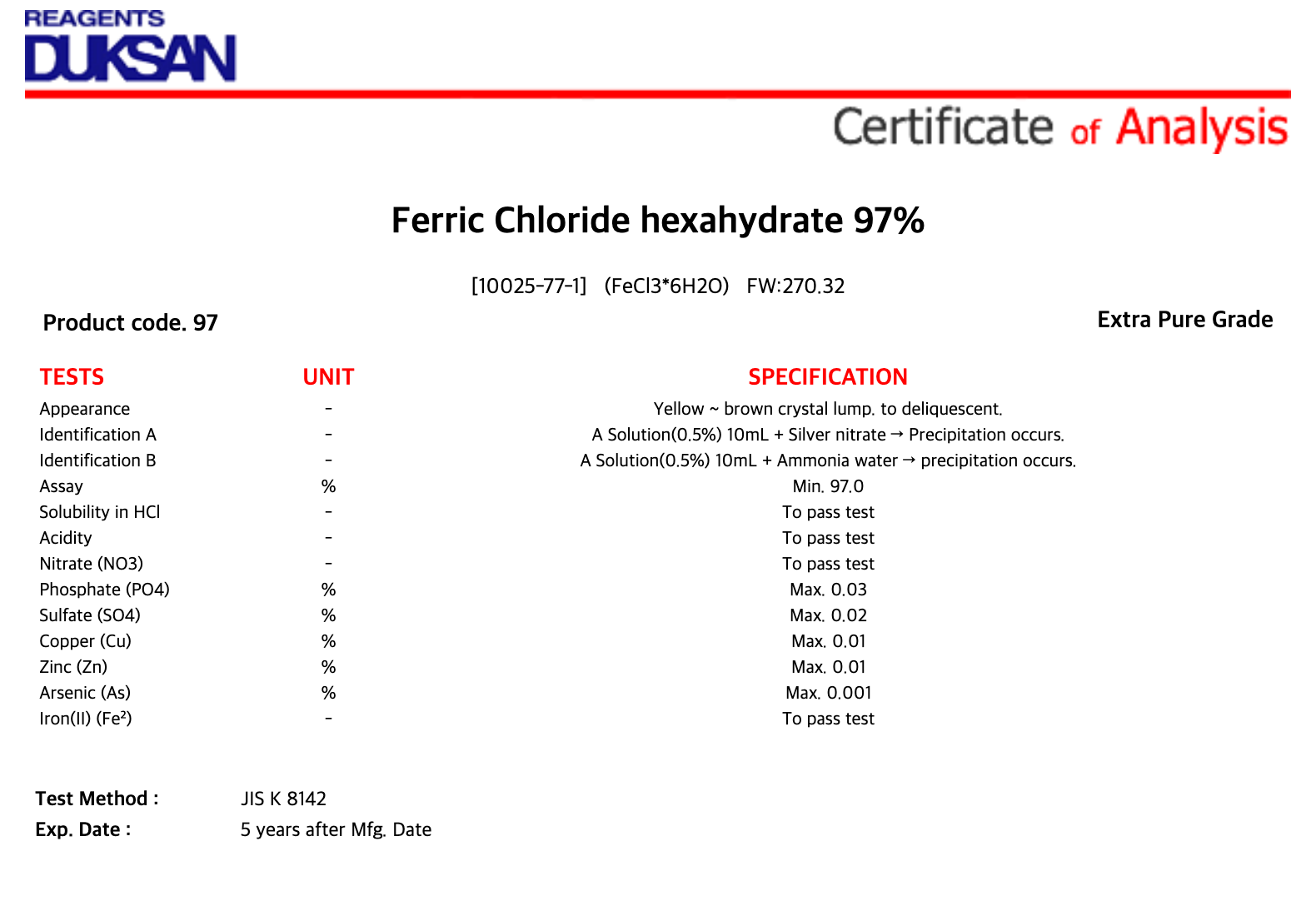 [97] Ferric Chloride hexahydrate, Extra Pure, 500 g, CAS# 10025-77-1 + 16,600원