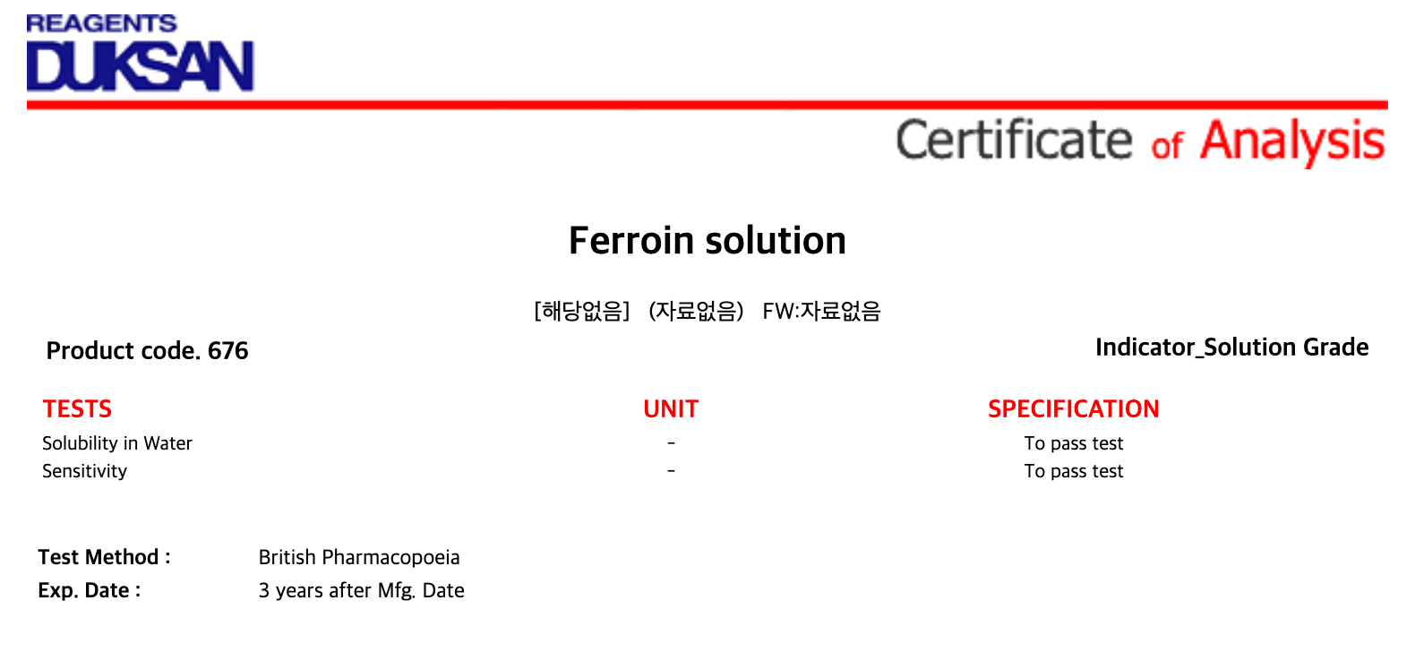 [676] Ferroin solution, Indicator_Solution, 500 ㎖, CAS# 14634-91-4 + 54,400원