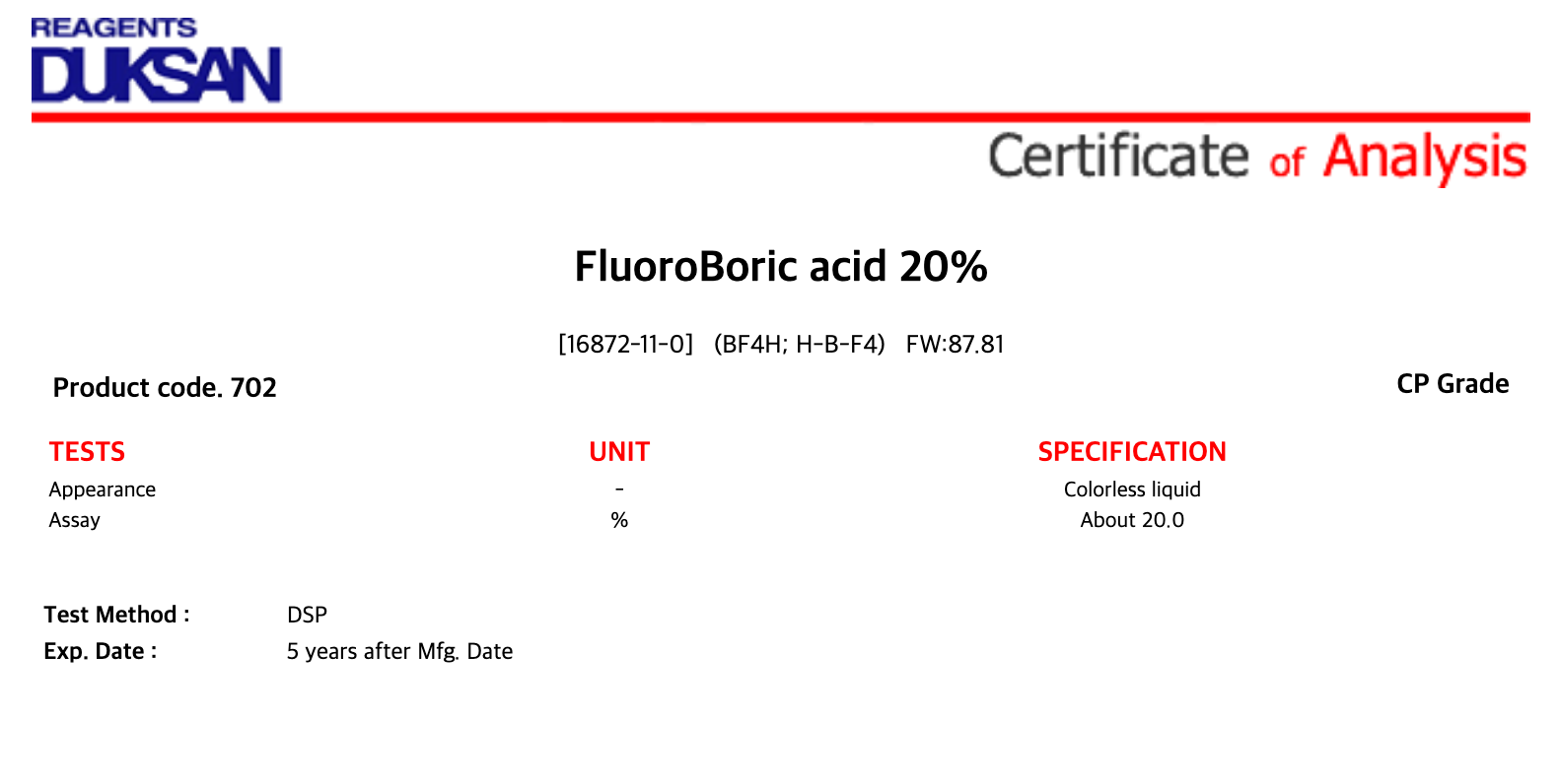 [702] FluoroBoric acid, CP, 500 g, CAS# 16872-11-0 + 11,400원