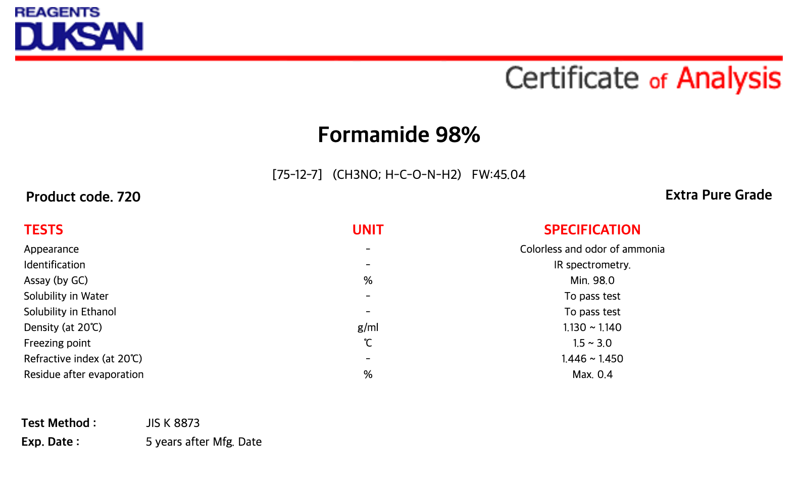 카르밤알데히드(CARBAMALDEHYDE); 메탄아미드(METHANAMIDE);포르미미딕 산(FORMIMIDIC ACID); CH4NO