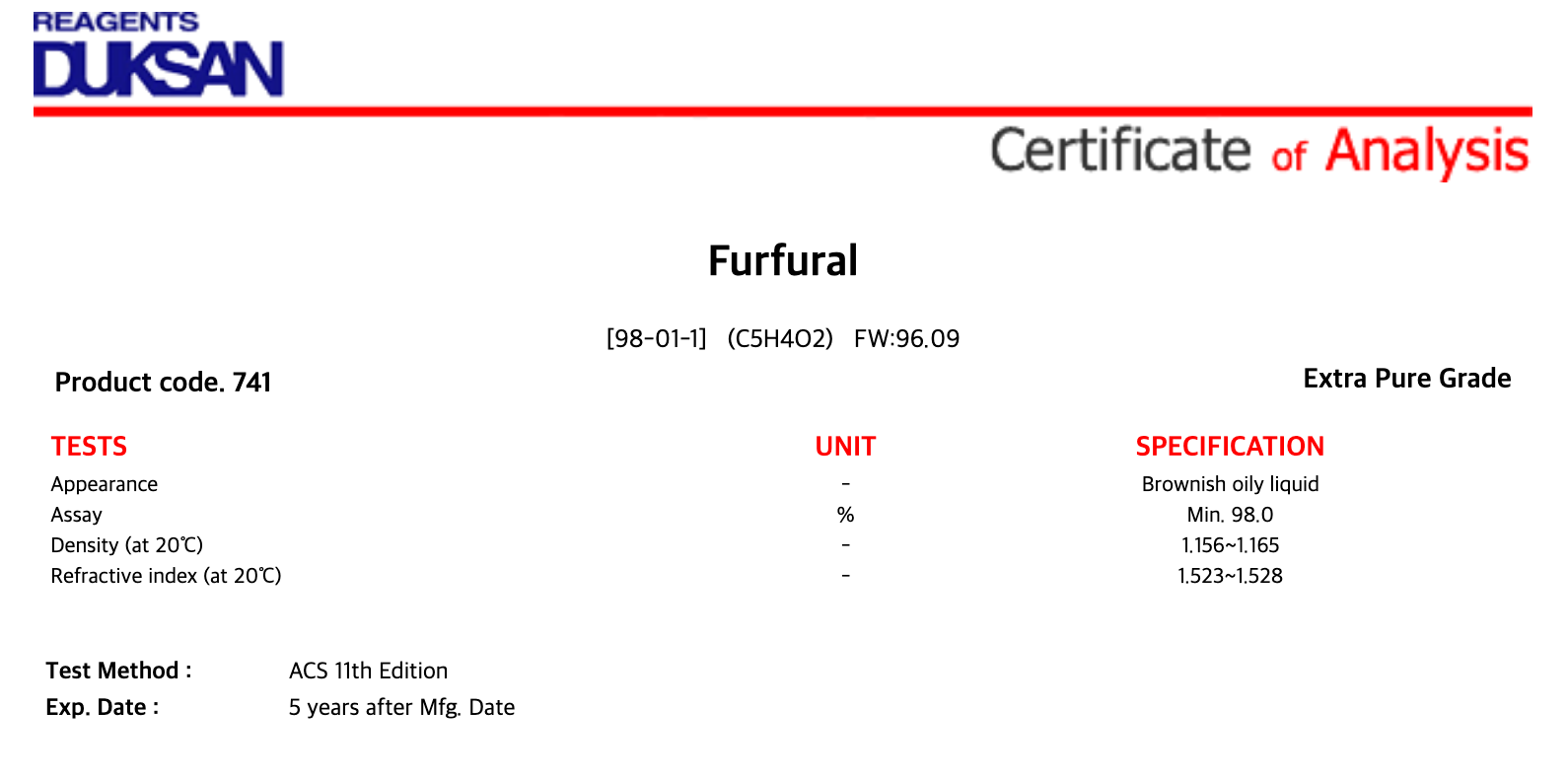 2-Furancarboxyaldehyde; 2-Furaldehyde ; Furan-2-carboxaldehyde ; 2-Furyl-Methanal ; 2-Furfural