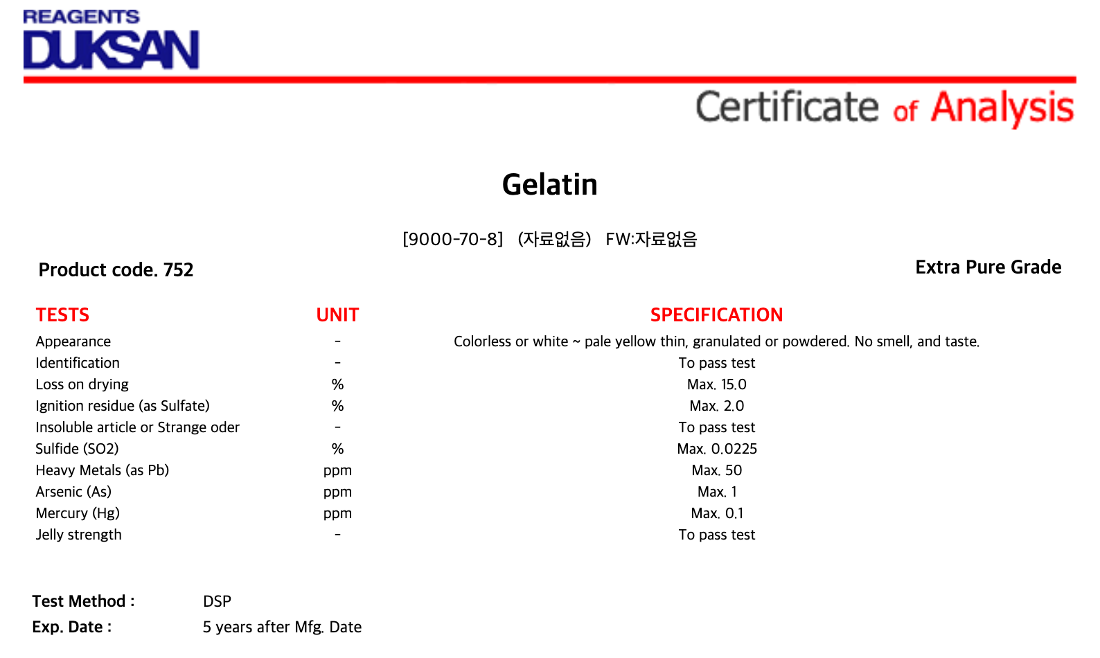 [752] Gelatin, Extra Pure, 500 g, CAS# 9000-70-8 + 16,500원
