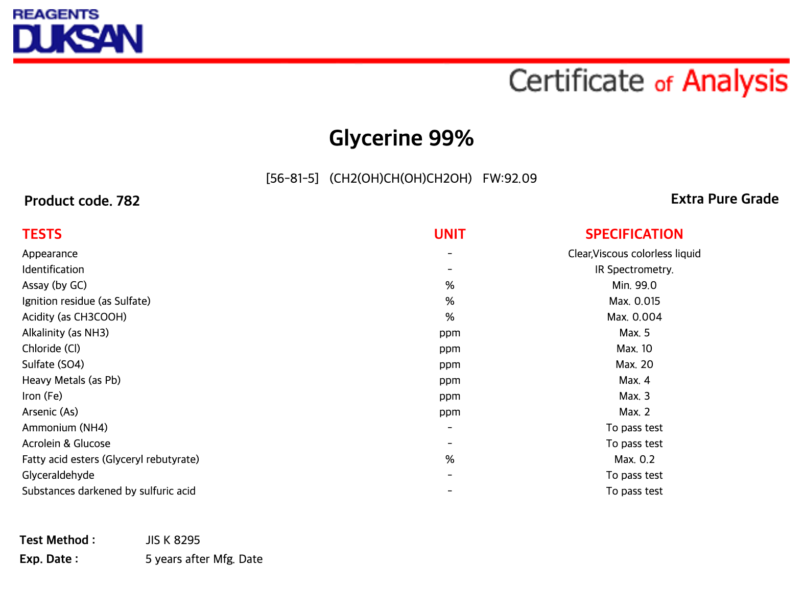 | 품질 규격 : | Extra Pure |