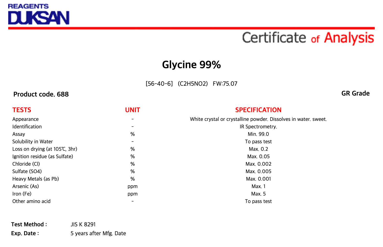 [688] Glycine, GR, 15 kg, CAS# 56-40-6 + 240,600원
