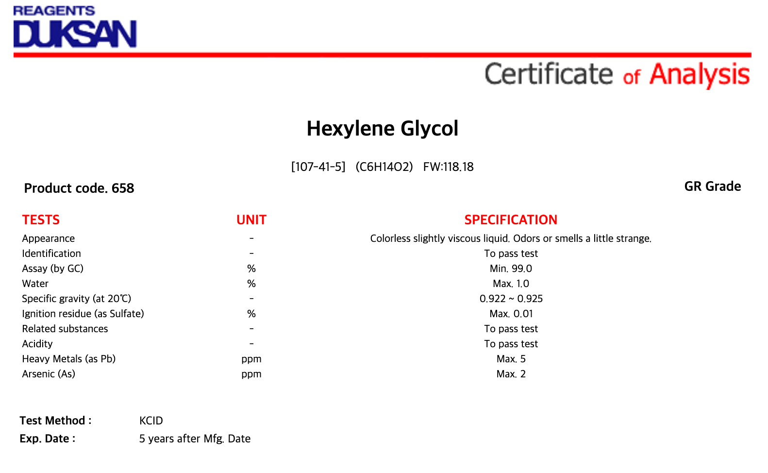 1. Hexylene Glycol, GR, 500 ㎖, CAS# 107-41-5