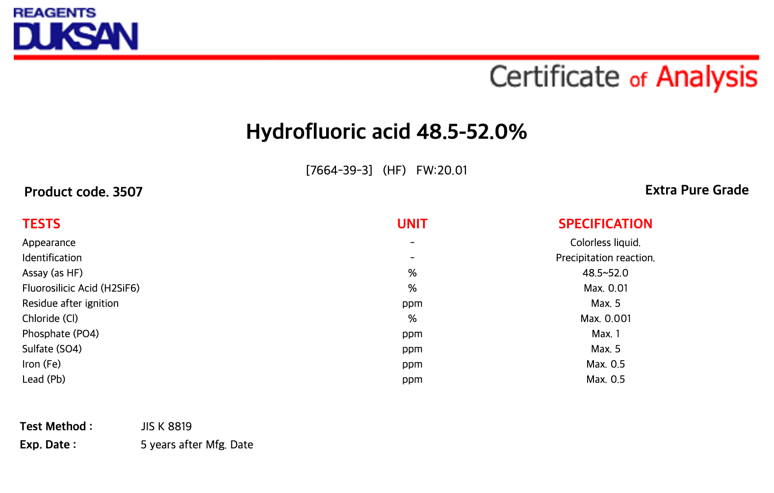 플루오르화 수소 : 불산; 불화수소산; 하이드로플루오릭산; 수소플루오르화; 플루오르화수소Hydrogen fluoride: Hydrofluoric acid, HL-060;