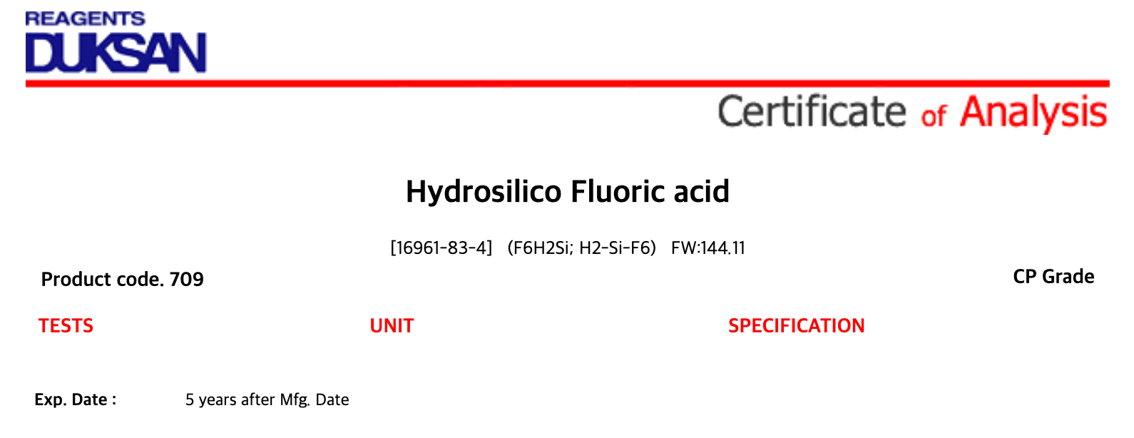 [709] Hydrosilico Fluoric acid, CP, 500 g, CAS# 16961-83-4 + 21,700원