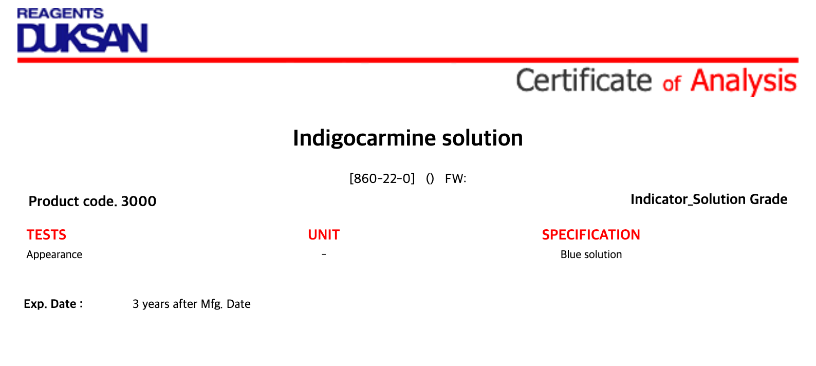 [3000] Indigocarmine solution, Indicator_Solution, 500 ㎖, CAS# 860-22-0 + 14,400원