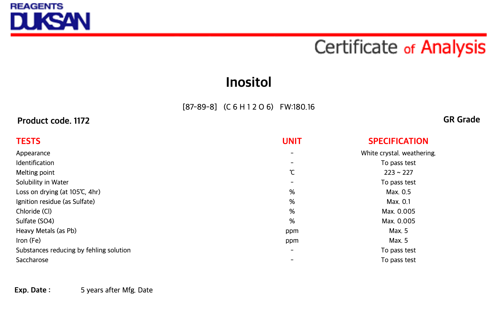 [1172] Inositol, GR, 500 g, CAS# 87-89-8 + 63,000원