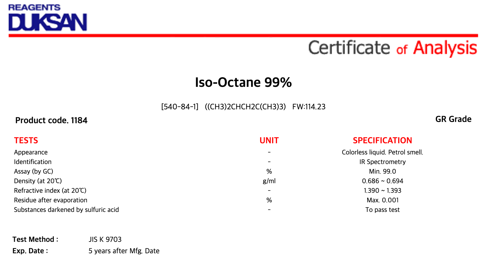 [1184] Iso-Octane, GR, 1 ℓ, CAS# 540-84-1 + 38,800원