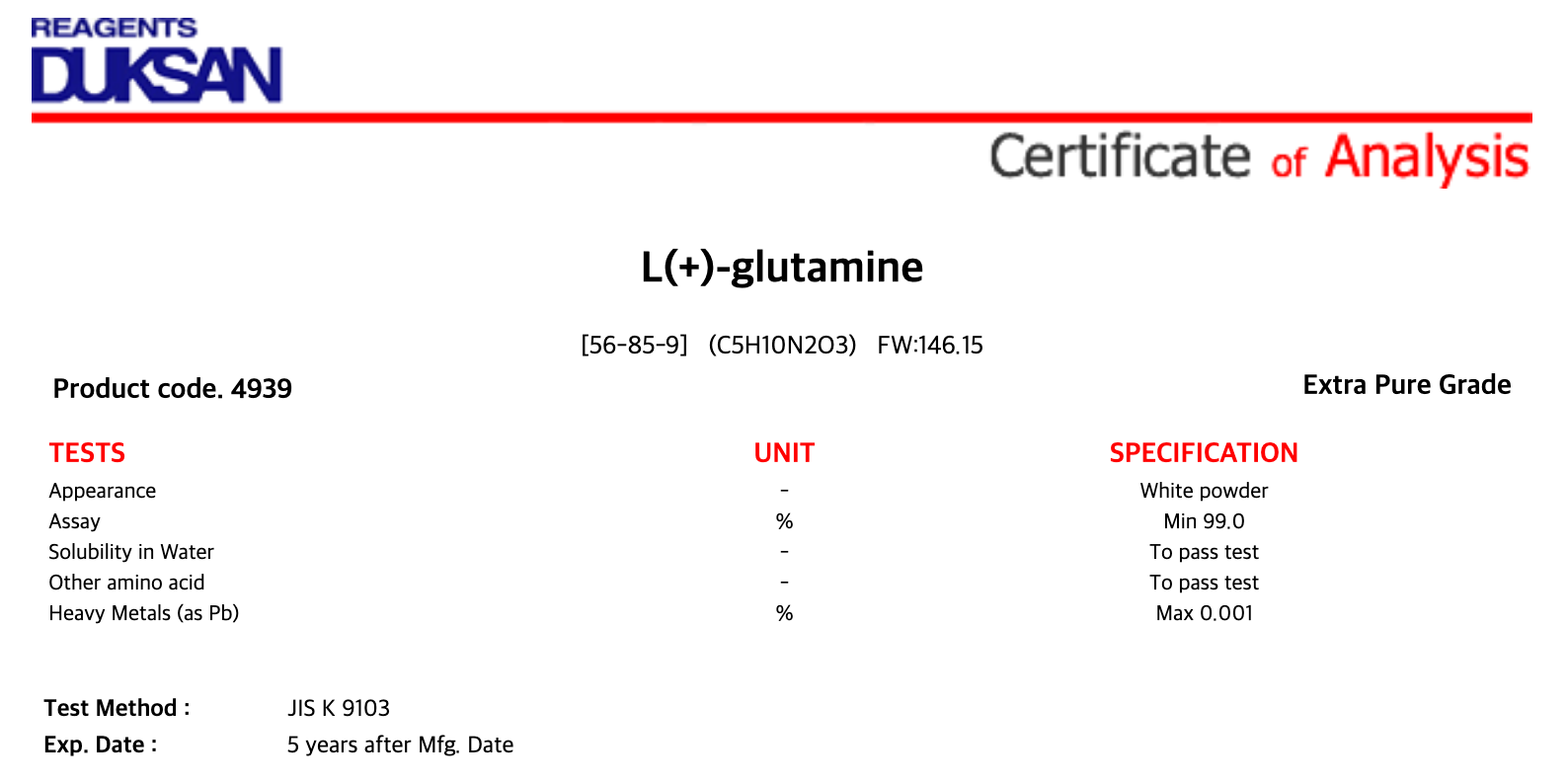 [4939] L(+)-glutamine, Extra Pure, 25 g, CAS# 56-85-9 + 17,600원