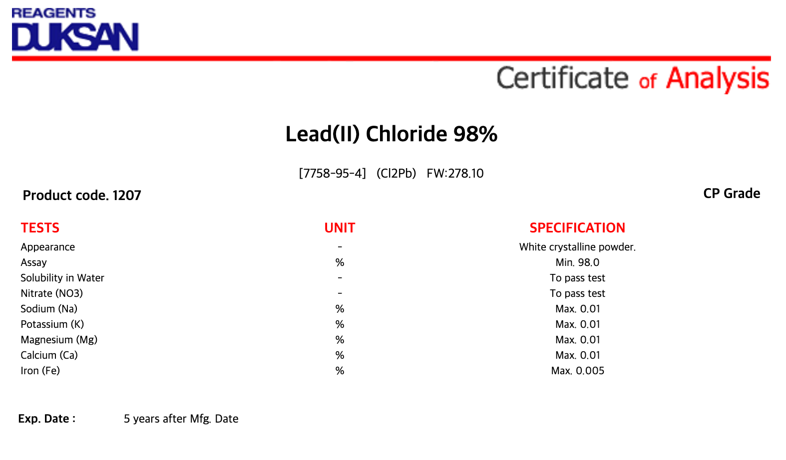 [1207] Lead(II) Chloride, CP, 500 g, CAS# 7758-95-4 + 48,400원
