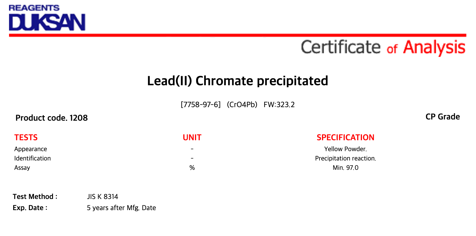 Chromic acid (H2CrO4), lead(2+) salt (1:1) ; CHROMIC ACID, LEAD (2+) SALT (1:1) (PICCS) ;