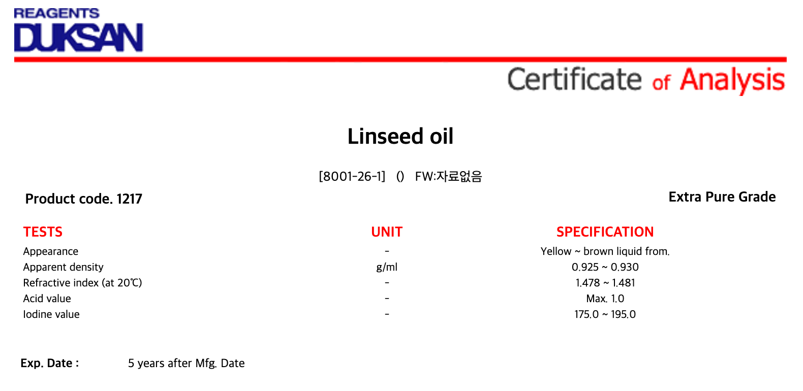 올레움 리니(OLEUM LINI); 아마인 기름, RAW(LINSEED OIL, RAW);