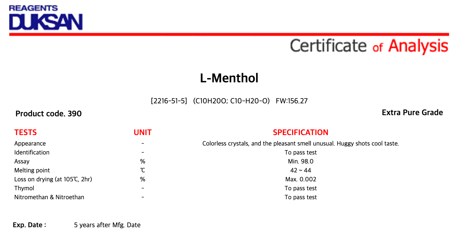 | 품명 : | L-Menthol |