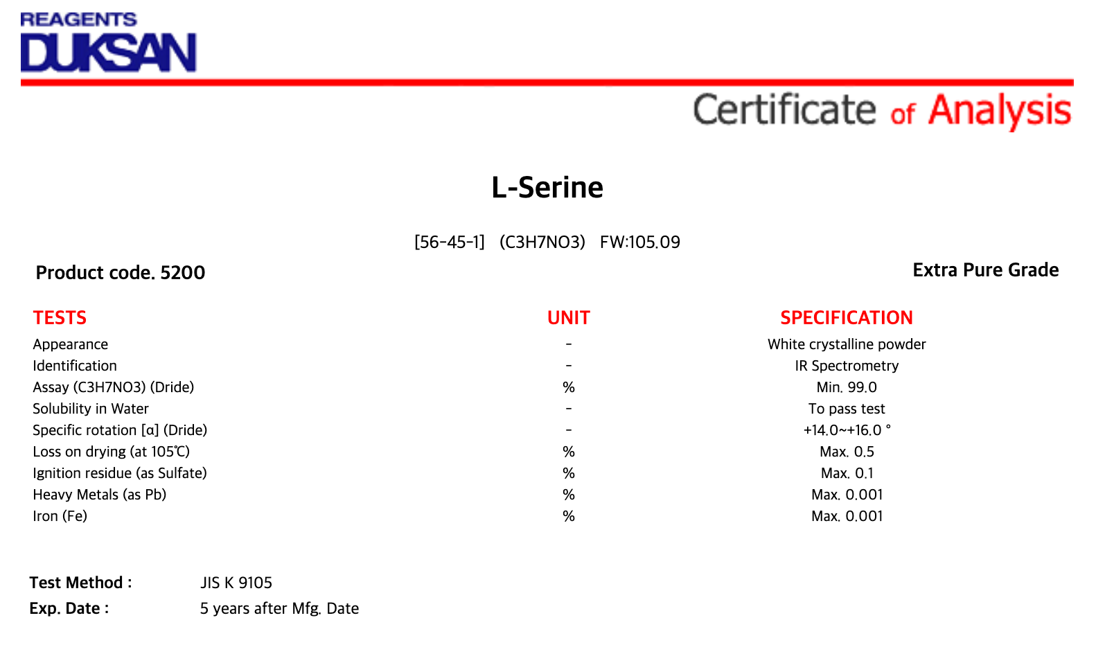 [5200] L-Serine, Extra Pure, 25 g, CAS# 56-45-1 + 26,400원