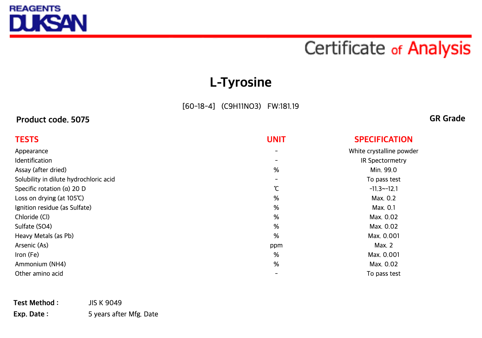 [5075] L-Tyrosine, GR, 25 g, CAS# 60-18-4 + 19,800원