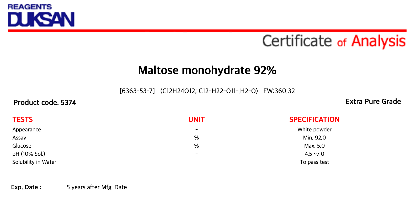 말트 슈가(MALT SUGAR); 말토비오스(MALTOBIOSE); 말토스(MALTOS); 마르토스-10(MARTOS-10); 말토오스(MALTOSE); 4-O-D-글루코피라노실-D-글루코오스(4-O-D-GLUCOPYRANOSYL-D-GLUCOSE); M-74; M-75; BP-684; OHS13585