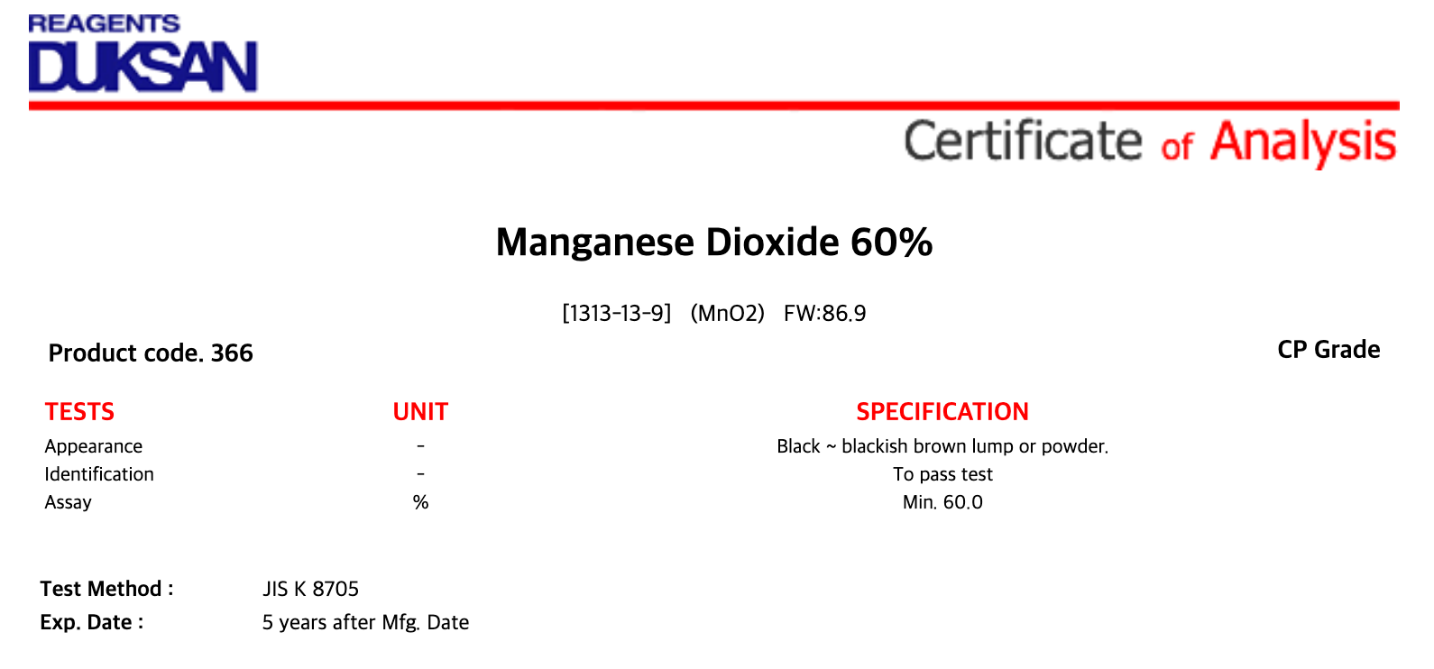 Manganese(IV) oxide ; Dioxomanganese ; Cement black ; Manganese black ; Manganese oxide (MnO2)