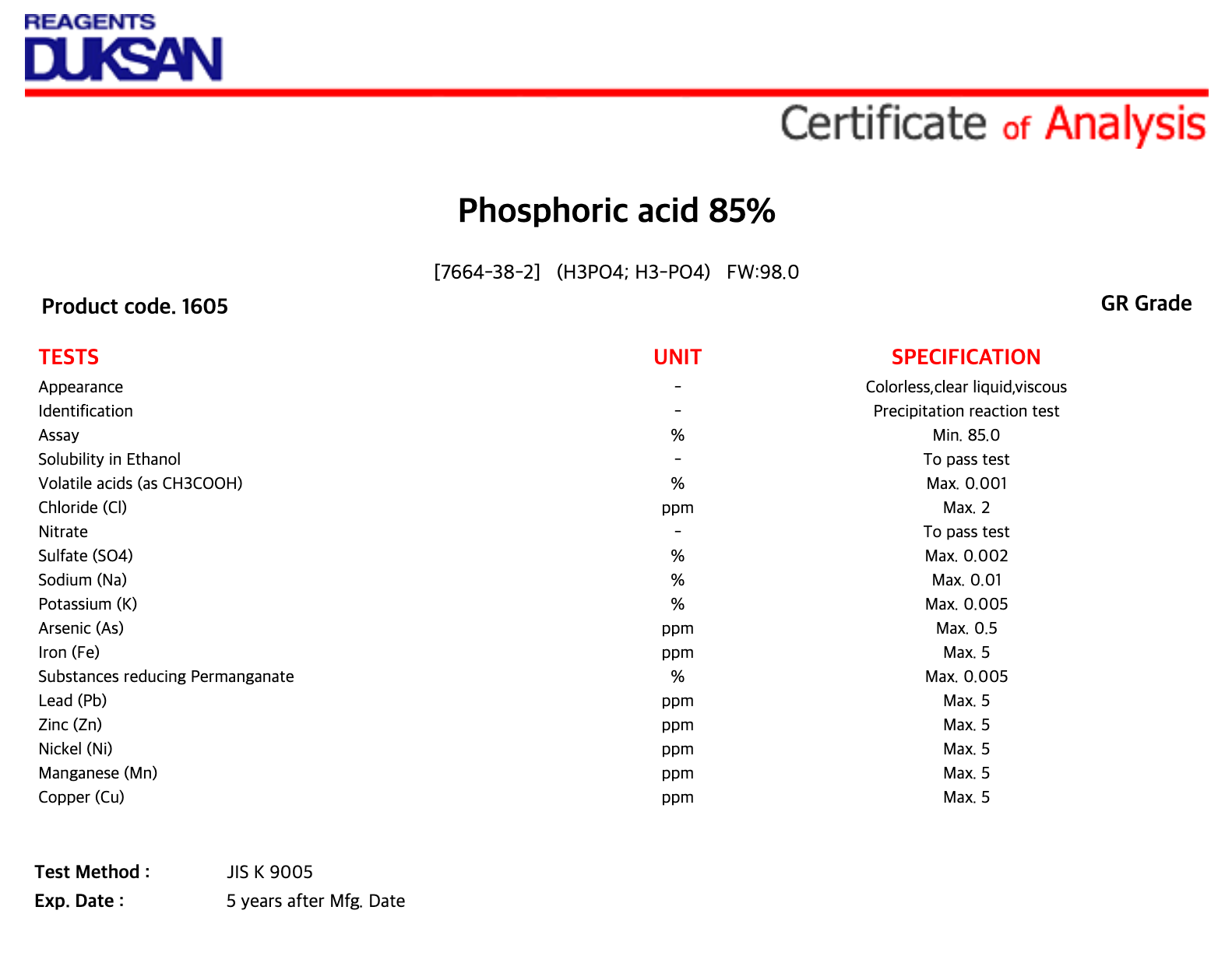 Orthophosphoric acid ; o-Phosphoric acid ; Sonac
