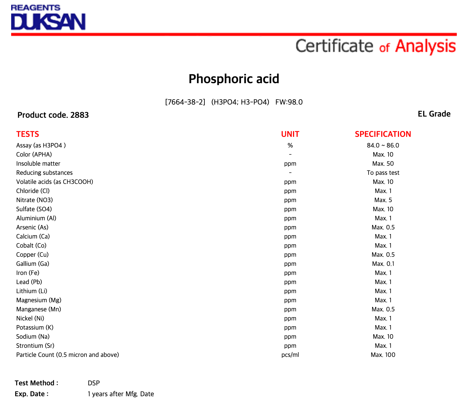 Orthophosphoric acid ; o-Phosphoric acid ; Sonac