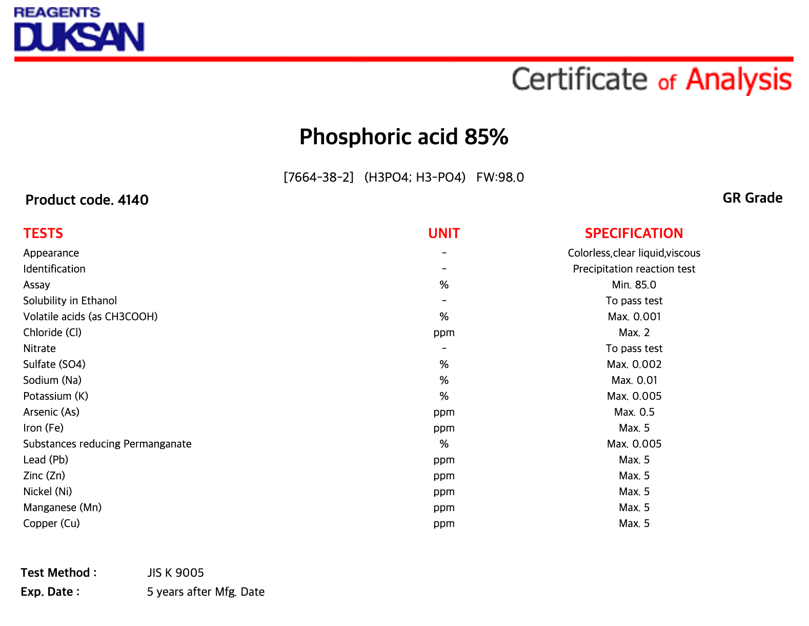 Phosphoric acid, GR, 2.5 ℓ, CAS# 7664-38-2