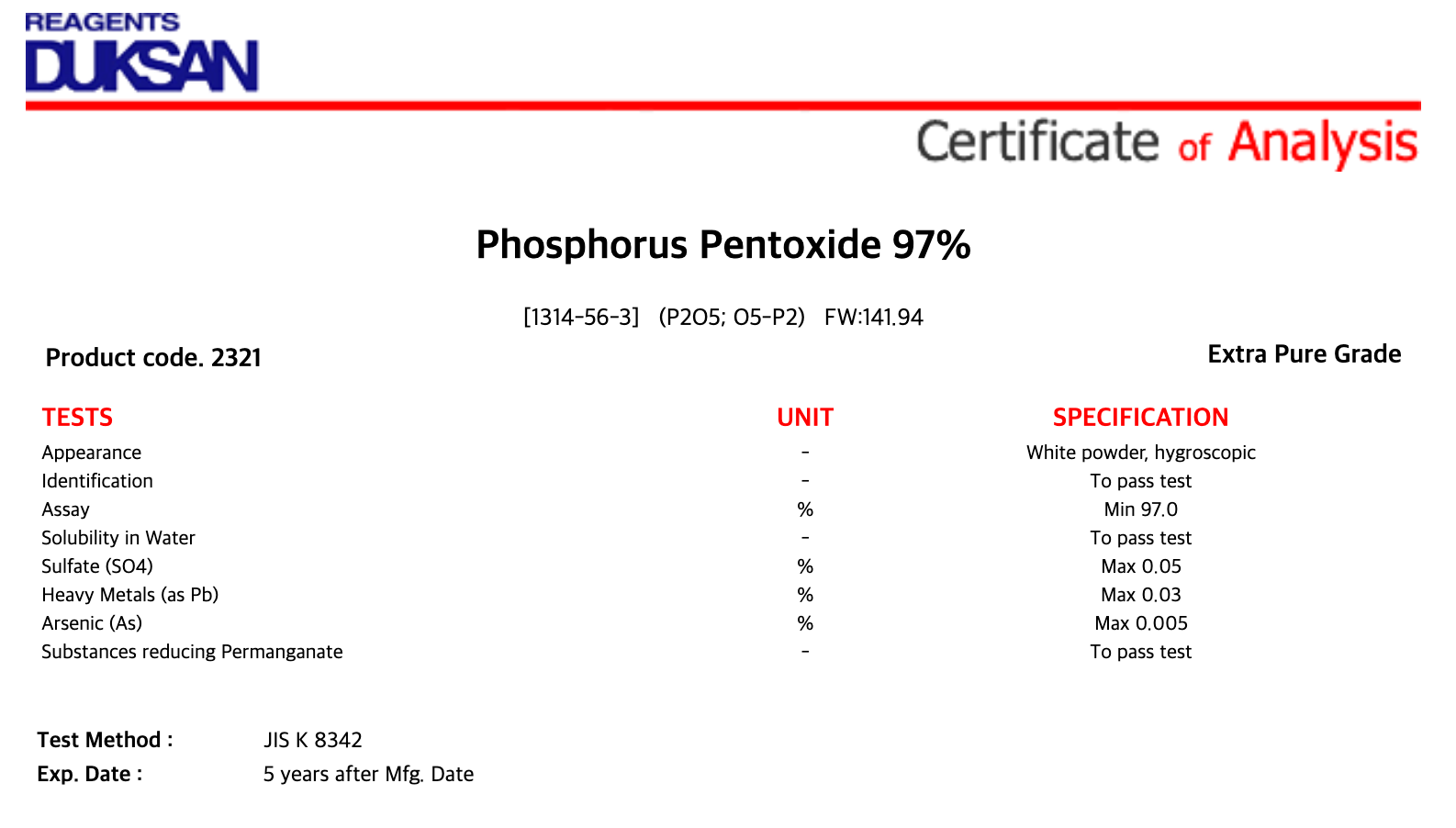 [2321] Phosphorus Pentoxide, Extra Pure, 1 kg, CAS# 1314-56-3 + 41,500원
